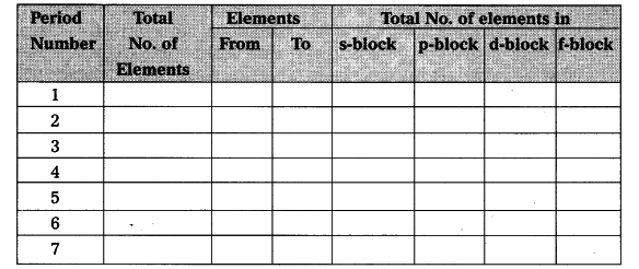Complete the following table using periodic table